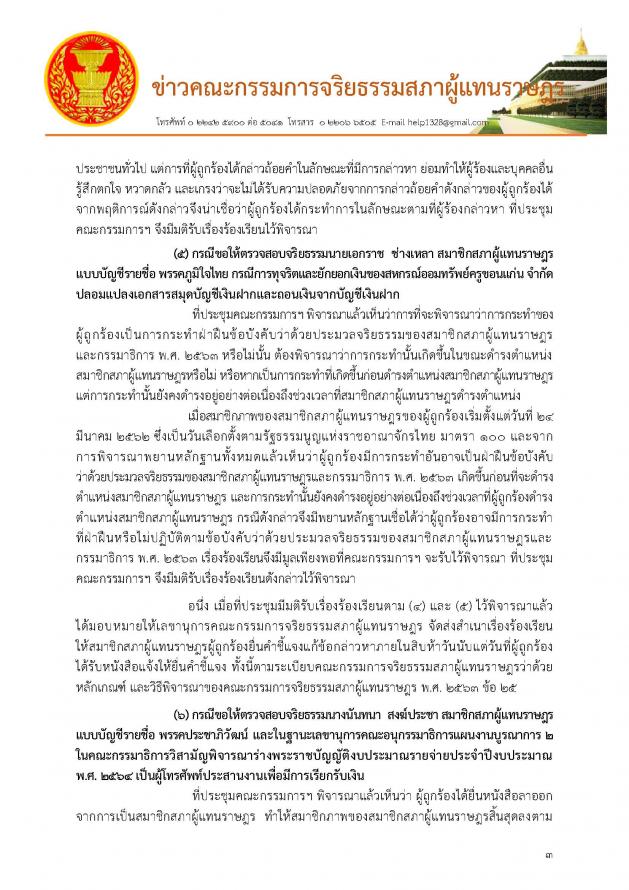 3. รายงานเสนอความเห็นของคณะอนุกรรมการจริยธรรมสภาผู้แทนราษฎรในการตรวจสอบกลั่นกรอง แสวงหา