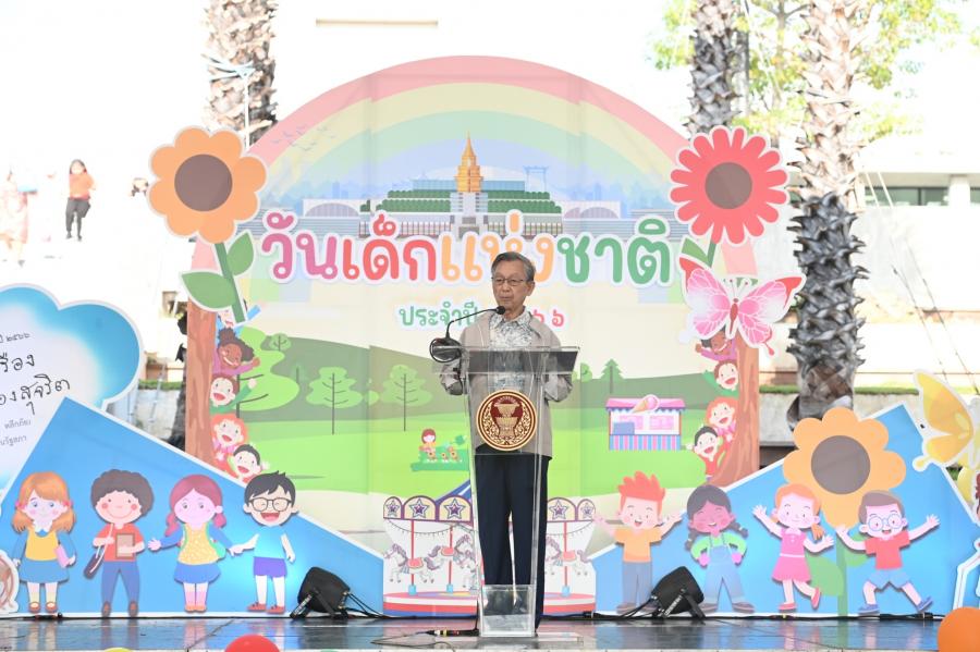 โอกาสนี้ นายชวน หลีกภัย กล่าวว่า ปีนี้เป็นปีแรกที่มีการจัดงานวันเด็กแห่งชาติ ประจำปี 2566 ณ รัฐสภาแห่งใหม่หลังจากที่มีการแพร่ระบาดของโรคติดเชื้อไวรัสโคโรนา 2019 (โควิด-19) เป็นต้นมา ในวันนี้ (14 ม.ค. 66) สำนักงานเลขาธิการสภาผู้แทนราษฎร ยังมีการป้องกันและเฝ้าระวังการแพร่ระบาดของโรคดังกล่าว โดยให้สมาชิกสภาผู้แทนราษฎรและบุคลากรในสังกัดรัฐสภาสวมหน้ากากอนามัย ล้างมือด้วยแอลกอฮอล์เพื่อป้องกันเชื้อโควิด-19 ตลอดเวลา อย่างไรก็ตาม สำนักงานฯ จึงจัดกิจกรรมขึ้นมาเพื่อเปิดโอกาสให้เด็กและเยาวชนเข้ามามีส่วนร่วมกับรัฐสภา สัมผัสบรรยากาศสถานที่ทำงานของฝ่ายนิติบัญญัติ และเข้าเยี่ยมขมห้องประชุมรัฐสภา เพื่อเพิ่มพูนความรู้ความเข้าใจด้านการเมืองการปกครองระบอบประชาธิปไตยในระบบรัฐสภาอันมีพระมหากษัตริย์ทรงเป็นประมุขและเพื่อปลูกฝังอุดมการณ์ประชาธิปไตยที่ถูกต้อง เด็กและเยาวชนเป็นทรัพยากรบุคคลที่เป็นทั้งอนาคตและความหวังสังคมและประเทศชาติ ในปี 2566 นี้ นายชวน หลีกภัย ประธานรัฐสภา ได้มอบคำขวัญวันเด็กแห่งชาติ คือ "ประเทศรุ่งเรือง เมื่อบ้านเมืองสุจริต" โดยให้ความสำคัญกับคำว่า "สุจริต" ซึ่งเป็นคำที่ให้ไว้ทุกสมัย เพราะสังคมประชาธิปไตยนั้น บ้านเมืองจะอยู่รอดได้ก็ต่อเมื่อคนต้องมีความสุจริต เคารพกติกาบ้านเมือง การปลูกฝังสำนึกเรื่องความสุจริตจะต้องเริ่มที่เด็กและเยาวชน ซึ่งเรามักเปรียบกันว่าเสมือนผ้าขาว เมื่อพวกเขาเติบโตขึ้นในอนาคตจะได้เป็นพลเมืองที่ยึดมั่นในความซื่อสัตย์สุจริต เด็กและเยาวชนที่มีความเชื่อมั่นในความซื่อสัตย์สุจริต เติบโตขึ้นจะมีตำแหน่งใด ๆ ในบ้านเมือง ก็จะบริหารประเทศด้วยความสุจริต