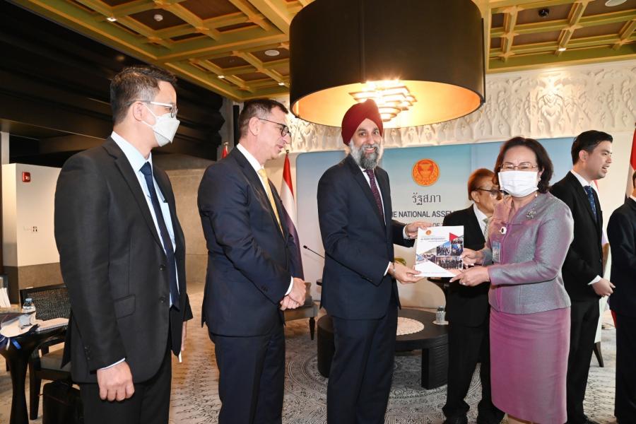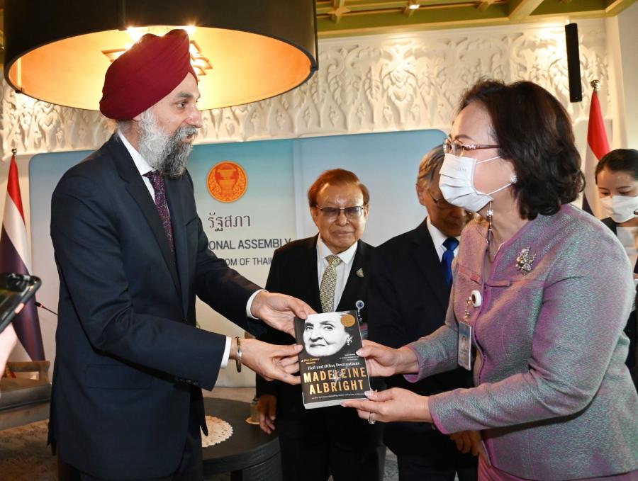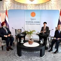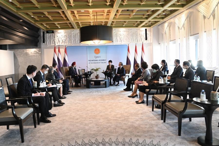 ประธานรัฐสภากล่าวต้อนรับและชื่นชมผู้อำนวยการภูมิภาคเอเชีย - แปซิฟิก ซึ่งเป็นผู้ที่มีประสบการณ์การทำงานในด้านการพัฒนาประชาธิปไตยร่วมกับรัฐสภาในหลายประเทศ โดยรัฐสภาไทยพร้อมที่จะเรียนรู้จากประสบการณ์การทำงานด้านประชาธิปไตยของ NDI อย่างไรก็ดี ประชาธิปไตยในระบบรัฐสภาของไทยไม่เหมือนกับระบบประชาธิปไตยแบบประธานาธิบดีของสหรัฐฯ บทบาทของสมาชิกรัฐสภาไทยและสหรัฐฯ จึงแตกต่างกัน และแม้ว่าสมาชิกสภาผู้แทนราษฎรมาจากการเลือกตั้ง แต่มีที่มาและพื้นฐานที่แตกต่างกัน จึงควรมีการส่งเสริมในเรื่องการให้ความรู้ให้กับสมาชิกฯ ด้วย นอกจากนี้ เชื่อมั่นว่า NDI จะสามารถร่วมมือกับสำนักงานเลขาธิการสภาผู้แทนราษฎรในการพัฒนาศักยภาพและกระบวนการทำงานของข้าราชการและเจ้าหน้าที่ได้เป็นอย่างดีในอนาคต รวมทั้งการผลักดันโครงการบ้านเมืองสุจริตซึ่งรัฐสภาไทยมุ่งมั่นที่จะปลูกฝังค่านิยมให้เยาวชนตระหนักถึงความซื่อสัตย์สุจริตโดยผ่านการรณรงค์ร่วมกับสถาบันการศึกษา