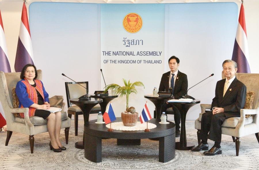ประธานรัฐสภา กล่าวต้อนรับและชื่นชมเอกอัครราชทูตฯ ที่ได้ปฏิบัติติหน้าที่อย่างดีเยี่ยมในช่วง 2 ปีที่ผ่านมา นับตั้งแต่เข้าดำรงตำแหน่งในประเทศไทย โดยความสัมพันธ์อันดีระหว่างไทยและฟิลิปปินส์จะครบรอบ 75 ปี ในปี 2567 และเนื่องจากทั้งสองประเทศมีความสัมพันธ์กันมายาวนานโดยเฉพาะในระดับประชาชน ดังจะเห็นได้จากนักเรียนไทยตั้งแต่อดีตจนถึงปัจจุบันนิยมเดินทางไปศึกษาต่อในฟิลิปปินส์เป็นจำนวนมาก จึงเชื่อมั่นว่าความสัมพันธ์นี้จะขยายเพิ่มมากขึ้นต่อไปในอนาคต ซึ่งในอดีตประธานรัฐสภาได้มีโอกาสเดินทางไปเยือนฟิลิปปินส์หลายครั้งตั้งแต่ก่อนดำรงตำแหน่งนายกรัฐมนตรี โดยเฉพาะเมื่อครั้งที่เดินทางไปเมืองบาเกียวเพื่อศึกษาวิถีชีวิตของประชาชนตามคำเชิญของอดีตประธานาธิบดีฟิเดล รามอส นอกจากนี้ ประธานรัฐสภายังได้รับปริญญาดุษฎีกิตติมศักดิ์จากมหาวิทยาลัยแห่งชาติฟิลิปปินส์ ในสมัยประธานาธิบดีโจเซฟ เอสตราด้า สำหรับในด้านความสัมพันธ์ในระดับรัฐสภา ฝ่ายไทยได้จัดตั้งกลุ่มมิตรภาพไทย-ฟิลิปปินส์ขึ้นมาแล้ว แต่เนื่องจากการเลือกตั้งทั่วไปของฟิลิปปินส์เพิ่งเสร็จสิ้น ไทยจึงหวังว่าฝ่ายฟิลิปปินส์จะจัดตั้งกลุ่มมิตรภาพขึ้นมาเช่นกัน ซึ่งจะเป็นกลไกสำคัญในการเสริมสร้างความสัมพันธ์ระหว่างสมาชิกรัฐสภาของทั้งสองประเทศต่อไป ทั้งนี้ ประธานรัฐสภายังได้ฝากความระลึกถึงไปยังประธานาธิบดีเฟอร์ดินาน มาร์กอส จูเนียร์ ประธานสภาผู้แทนราษฎร และประธานวุฒิสภาของฟิลิปปินส์ด้วย