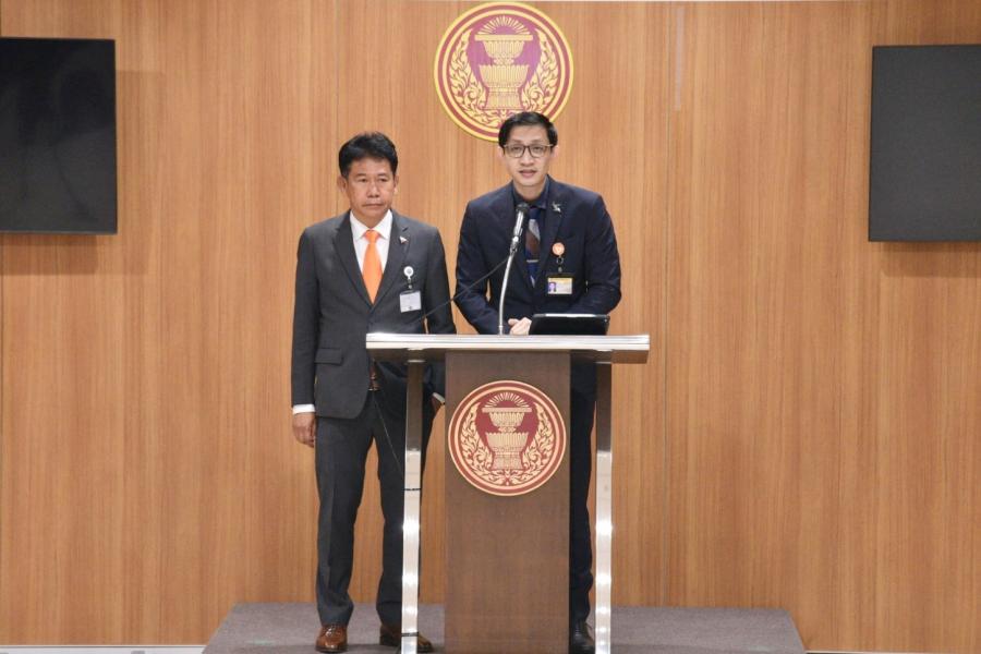 นายจิรัฏฐ์ ทองสุวรรณ์ และนายธีรัจชัย พันธุมาศ ส.ส.พรรคก้าวไกล แถลงข่าวเกี่ยวกับผลการพิจารณาของคณะกรรมการพิจารณาตรวจสอบข้อเท็จจริงการก่อสร้างโครงการปรับปรุงป้ายชื่อสถานีกลางบางซื่อเป็นสถานีกลางกรุงเทพอภิวัฒน์และตราสัญลักษณ์ของการรถไฟแห่งประเทศไทย