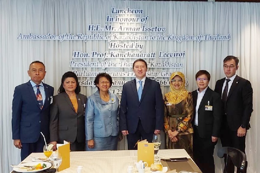 วันพฤหัสบดีที่ 26 มกราคม 2566 เวลา 12.00 นาฬิกา ณ ห้องอาหารปิคโคโล โรงแรมรอยัล ปริ๊นเซส หลานหลวง ศ.พิเศษกาญจนารัตน์ ลีวิโรจน์ สมาชิกวุฒิสภา ในฐานะประธานกลุ่มมิตรภาพสมาชิกรัฐสภาไทย-คาซัคสถาน เป็นเจ้าภาพเลี้ยงอาหารกลางวันเพื่อเป็นเกียรติแก่ H.E. Mr. Arman Issetov เอกอัครราชทูตสาธารณรัฐคาซัคสถานประจำประเทศไทย เพื่อแนะนำคณะกรรมการบริหารชุดใหม่ โดยมีคณะกรรมการบริหารกลุ่มมิตรภาพฯ ไทย-คาซัคสถานเข้าร่วม ได้แก่ น.ส.เพชรดาว โต๊ะมีนา สมาชิกสภาผู้แทนราษฎร ในฐานะรองประธาน พร้อมด้วย น.ส.รังสิมา รอดรัศมี และน.ส.มัลลิกา จิระพันธุ์วาณิช สมาชิกสภาผู้แทนราษฎร ในฐานะกรรมการ รวมทั้งพลตำรวจตรี ปรัชญ์ชัย ใจชาญสุขกิจ สมาชิกวุฒิสภา ในฐานะกรรมการ โดยได้แสดงความยินดีที่เอกอัครราชทูตฯ เดินทางเข้ารับตำแหน่ง ณ ประเทศไทย พร้อมยืนยันที่จะร่วมมือกันเสริมสร้างความสัมพันธ์ระหว่างประเทศไทยและคาซัคสถานให้ครอบคลุมทุกมิติ อาทิ การค้าการลงทุน สังคมและวัฒนธรรม และด้านนิติบัญญัติ