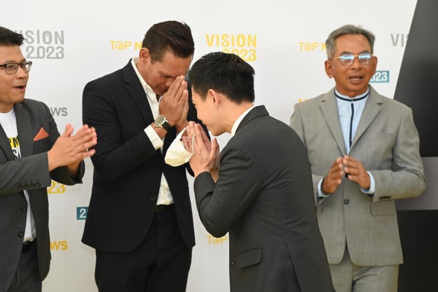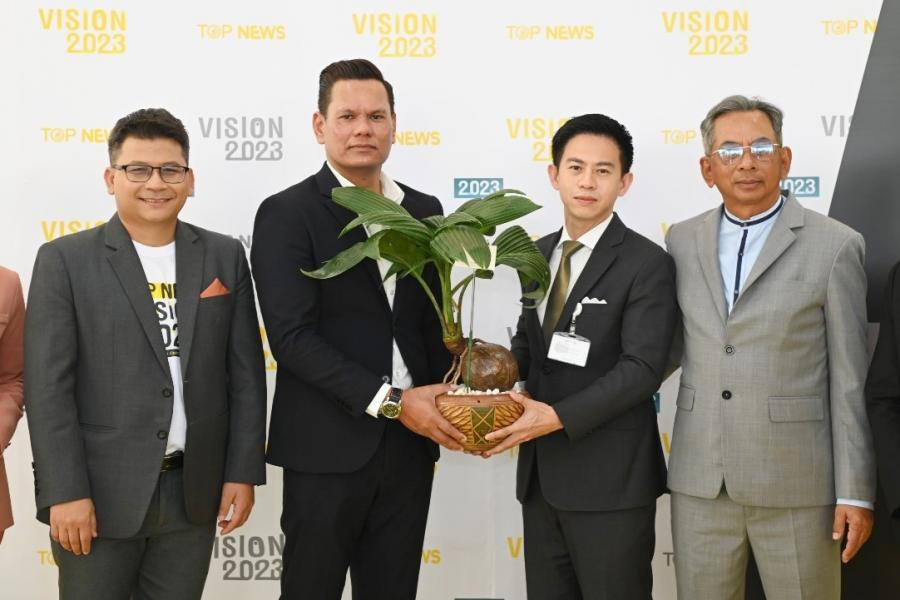 ประธานรัฐสภาและประธานสภาผู้แทนราษฎร มอบหมายให้ นายอิสระ เสรีวัฒนวุฒิ ที่ปรึกษาประธานรัฐสภา มอบบอนไซมะพร้าวเพื่อแสดงความยินดีเนื่องในโอกาสครบรอบการก่อตั้งสถานีข่าว TOPNEWS ในงาน TOP NEWS VISION 2023