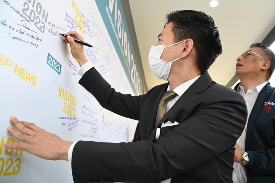 วันพุธที่ 1 กุมภาพันธ์ 2566 เวลา 09.30 นาฬิกา ณ สถานีโทรทัศน์ TOPNEWS (ธนาซิตี้) ต.บางโฉลง อ.บางพลี จ.สมุทรปราการ นายชวน หลีกภัย ประธานรัฐสภาและประธานสภาผู้แทนราษฎร มอบหมายให้ นายอิสระ เสรีวัฒนวุฒิ ที่ปรึกษาประธานรัฐสภา มอบบอนไซมะพร้าวเพื่อแสดงความยินดีเนื่องในโอกาสครบรอบการก่อตั้งสถานีข่าว TOPNEWS ในงาน “TOP NEWS VISION 2023” เดินหน้าประเทศไทยด้วยข่าวและความจริง TOPNEWS ครบรอบ 2 ปี โดยมี นายสนธิญาณ ชื่นฤทัยในธรรม ประธานเจ้าหน้าที่บริหาร และนายฉัตรชัย ภู่โคกหวาย กรรมการผู้จัดการ บริษัท ท็อปนิวส์ดิจิทัลมีเดีย จำกัด ให้การต้อนรับ