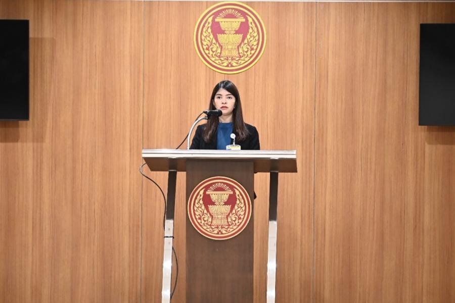 น.ส.สุทธวรรณ สุบรรณ ณ อยุธยา โฆษกคณะ กมธ.การพัฒนาการเมือง การสื่อสารมวลชน และการมีส่วนร่วมของประชาชน แถลงข่าวผลการประชุมคณะ กมธ.