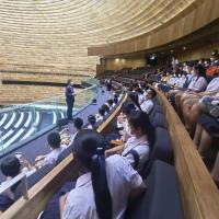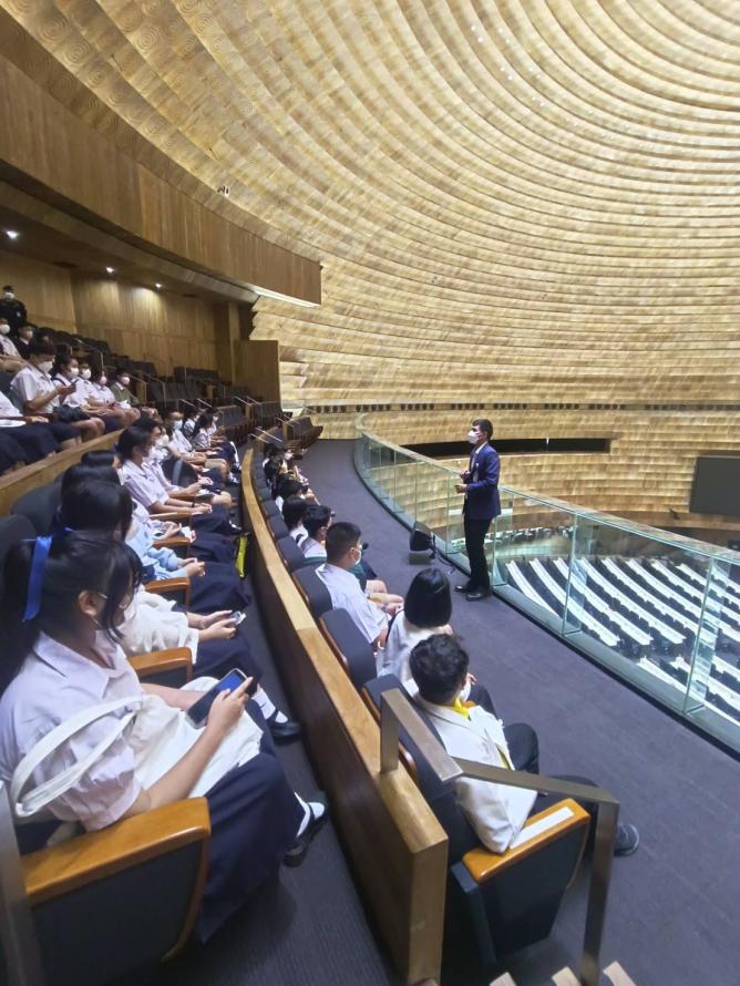 วันศุกร์ที่ 3 กุมภาพันธ์ 2566 เวลา 13.00 นาฬิกา คณะครูและกรรมการนักเรียนสภานักเรียนโรงเรียนเบญจมราชูทิศ จังหวัดจันทบุรี จำนวน 70 คน เข้าเยี่ยมชมรัฐสภา