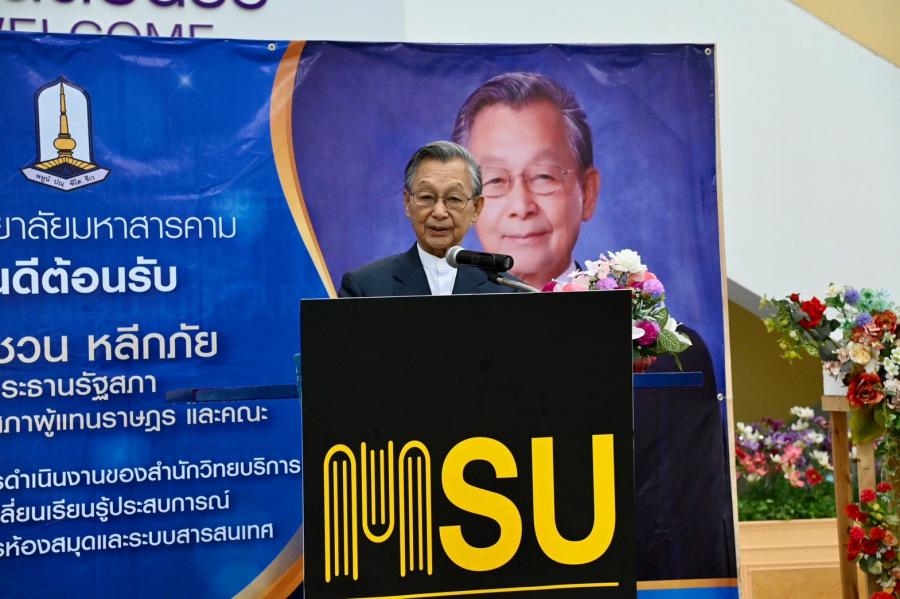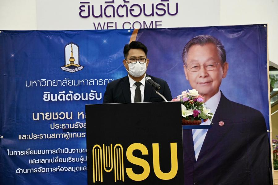 ประธานรัฐสภา เยี่ยมชมการดำเนินงานของสำนักวิทยบริการ มหาวิทยาลัยมหาสารคาม ตามคำเชิญของ รองอธิการบดีฝ่ายบริหารและพัฒนาศักยภาพองค์กร ปฏิบัติราชการแทนอธิการบดีมหาวิทยาลัยมหาสารคาม