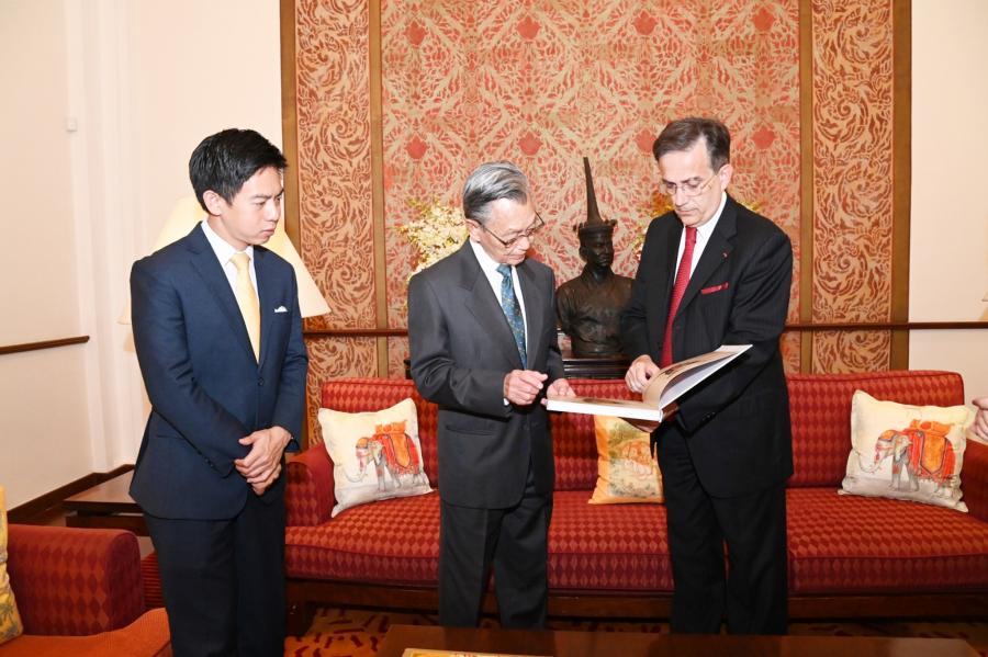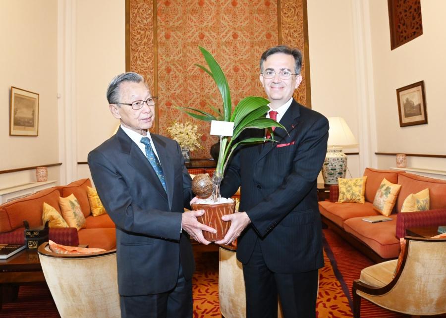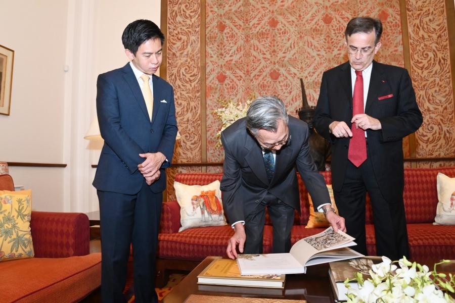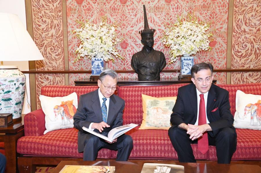 ในโอกาสนี้ ประธานรัฐสภาและประธานสภาผู้แทนราษฎร และเอกอัครราชทูตฯ รวมทั้งแขกผู้มีเกียรติ ได้หารือร่วมกันในเรื่องความสัมพันธ์ระหว่างไทย-ฝรั่งเศส ที่มีสายสัมพันธ์มาอย่างยาวนานและใกล้ชิดมาโดยตลอด นับตั้งแต่ประวัติศาสตร์ทางการทูต ในรัชสมัยของสมเด็จพระนารายณ์มหาราช และพระเจ้าหลุยส์ที่ 14 ได้มีการส่งราชทูตเพื่อเจริญสัมพันธไมตรี ซึ่งทั้งสองประเทศได้พัฒนาความสัมพันธ์ระหว่างกันมาอย่างต่อเนื่องในหลากหลายมิติ ที่นำมาซึ่งประโยชน์ร่วมกันของทั้งสองประเทศ