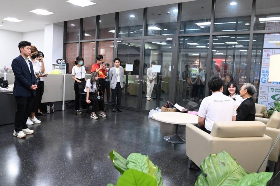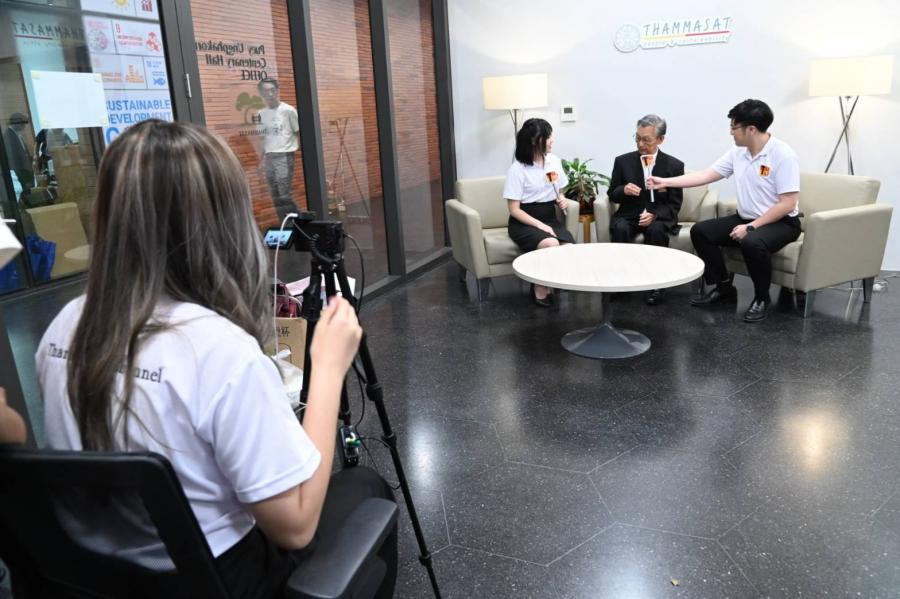 ประธานรัฐสภา บันทึกเทปร่วมแสดงความคิดเห็นกับองค์กรวิทยุและโทรทัศน์แห่งมหาวิทยาลัยธรรมศาสตร์ TUTV ในประเด็นบทบาทและความสำคัญกับการพัฒนาเครือข่ายศิษย์เก่ามหาวิทยาลัยธรรมศาสตร์ให้เข้มแข็ง ณ อุทยานเรียนรู้ป๋วย 100 ปี มหาวิทยาลัยธรรมศาสตร์ ศูนย์รังสิต