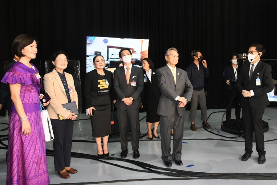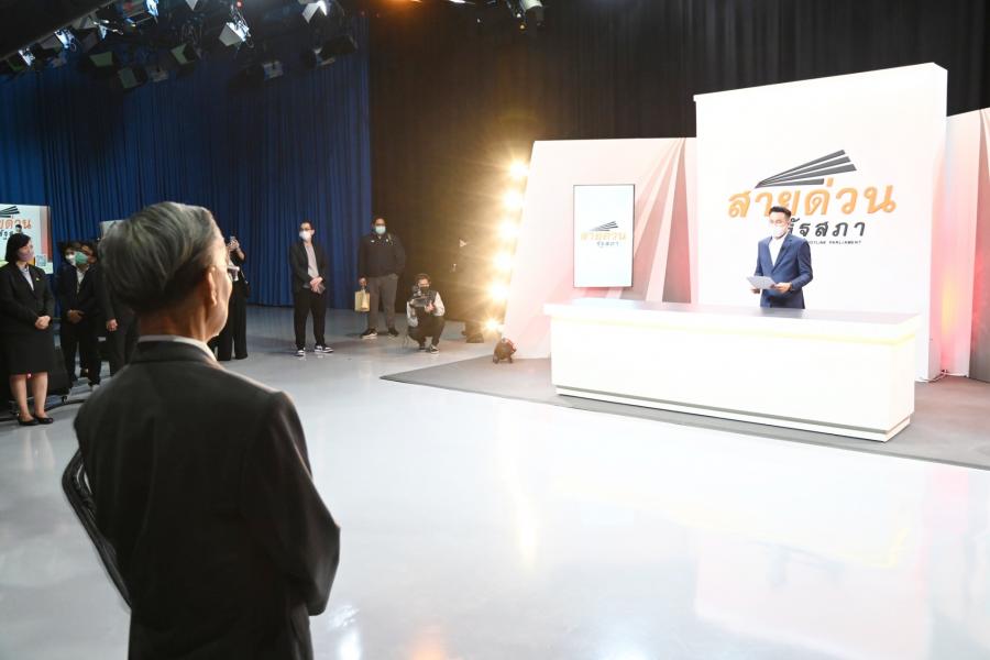 นายชวน หลีกภัย และผู้เข้าร่วมพิธีเปิดอาคารสถานีวิทยุกระจายเสียงและวิทยุโทรทัศน์รัฐสภา เยี่ยมชมห้องออกอากาศของสถานีวิทยุและโทรทัศน์รัฐสภาในรายการสายด่วนรัฐสภา และกฎหมายหน้า 1 (ต่อ)