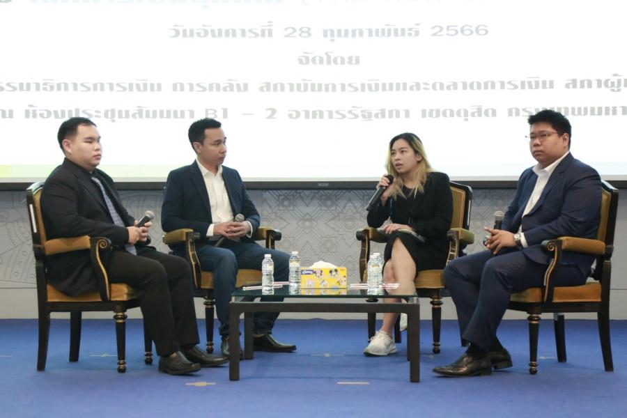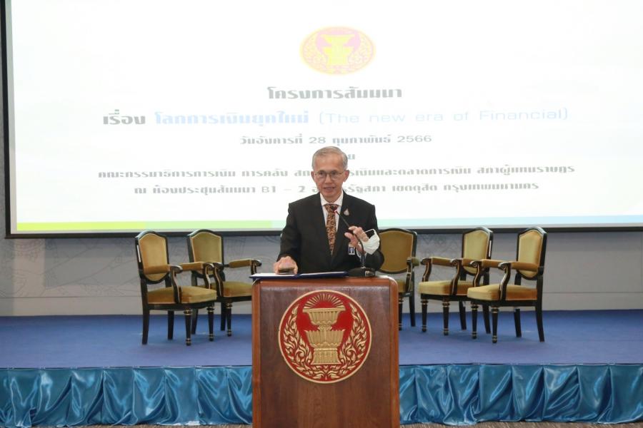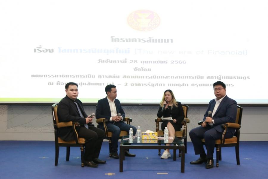 จากนั้น เป็นการสัมมนาเรื่อง “โลกการเงินยุคใหม่ (The new ear of Financial) ได้รับเกียรติจากวิทยากรผู้ทรงคุณวุฒิ ประกอบด้วย นายปภังกร จันทร์เดชาภัทร  หัวหน้าฝ่ายแนะนำสินทรัพย์ดิจิทัล บริษัท คอยน์ดี จำกัด  นายสมิทธิ เจริญมิน เพจน้ายามพาเทรด  และน.ส.ศศิมา  อธิรัตน์ปัญญา เพจ Aunty Crypto และ Project Manager บริษัท Tripster สำหรับการสัมมนาดังกล่าวจัดโดยคณะ กมธ.การเงิน การคลัง สถาบันการคลังและตลาดการเงิน  มีวัตถุประสงค์เพื่อเสริมสร้างความรู้ความเข้าใจให้แก่บุคลากรในหน่วยงานภาครัฐและภาคเอกชนรวมถึงประชาชนที่สนใจเกี่ยวกับเทคนิคในการจัดการด้านการเงินและการลงทุนในโลกการเงินยุคใหม่ รวมทั้งการใช้เทคโนโลยีและระบบการสื่อสารออนไลน์มาประยุกต์ใช้ในธุรกิจด้านการเงิน การธนาคารและการลงทุน (FinTech) เพื่อให้สามารถนำไปประยุกต์ใช้ในการดำเนินชีวิตและการทำงานได้อย่างมีประสิทธิภาพ  ตลอดจนเพื่ออภิปรายแลกเปลี่ยนความคิดเห็นระหว่างวิทยากรผู้ทรงคุณวุฒิด้านเศรษฐกิจการเงิน และเทคโนโลยี ระดมความคิดเห็น แลกเปลี่ยนเรียนรู้และมุมมองเกี่ยวกับแนวทางการจัดการด้านการเงินและการลงทุนในโลกการเงินยุคใหม่ และเพื่อนำไปประยุกต์ใช้ในการดำเนินชีวิต และการทำงานและเพื่อรวบรวมข้อมูลวิเคราะห์ ประมวลผลและสรุปผลเสนอต่อหน่วยงานที่เกี่ยวข้องได้รับทราบต่อไป โดยมีกลุ่มเป้าหมายคือหน่วยงานภาครัฐภาคเอกชนและประชาชนที่สนใจ จำนวน 100 คน