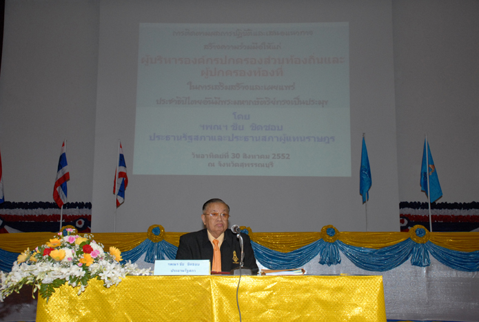วันอาทิตย์ที่ ๓๐ สิงหาคม ๒๕๕๒ เวลา ๐๙.๐๐ นาฬิกา  นายชัย  ชิดชอบ  ประธานรัฐสภา และประธานสภาผู้แทนราษฎร  เป็นประธานในพิธีเปิดโครงการติดตามผลการปฏิบัติและเสนอแนะแนวทางสร้างความร่วมมือให้แก่ผู้บริหารองค์กรปกครองท้องถิ่น และผู้ปกครองท้องที่ในการเสริมสร้างและเผยแพร่ประชาธิปไตยอันมีพระมหากษัตริย์ทรงเป็นประมุข ณ จังหวัดสุพรรณบุรี