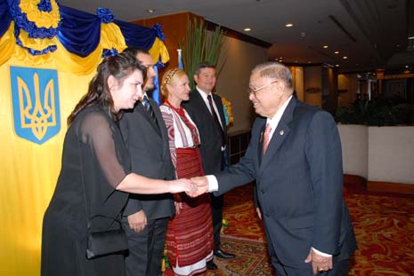 | วันพฤหัสบดีที่ ๒๗ สิงหาคม ๒๕๕๒ เวลา ๑๘.๓๐ นาฬิกา ณ ห้องบอลรูม ๑ โรงแรมดิเอ็มเมอรัล กรุงเทพฯ นายชัย ชิดชอบ ประธานรัฐสภา และประธานสภาผู้แทนราษฎร เข้าร่วมงานเลี้ยงรับรอง เนื่องในโอกาสครบรอบ ๑๘ ปี ของวันชาติประเทศยูเครน |