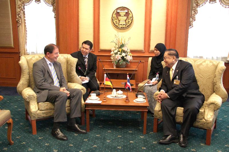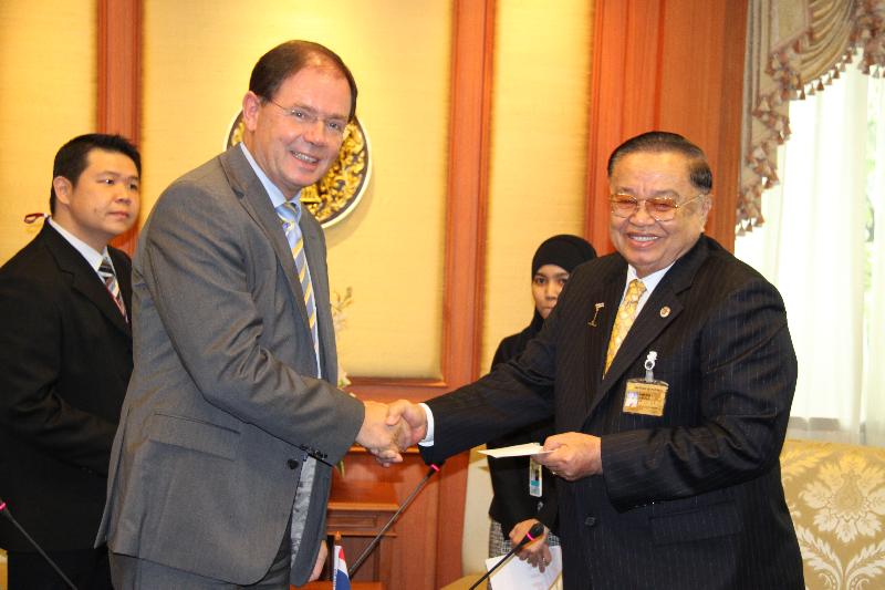 | วันจันทร์ที่ ๒๕ มกราคม ๒๕๕๓ เวลา ๑๑.๐๐ นาฬิกา ณ ห้องรับรอง ๒ ชั้น ๒ อาคารรัฐสภา ๑ นายชัย ชิดชอบ ประธานรัฐสภา และประธานสภาผู้แทนราษฎร ให้การรับรองนายฮันส์ ไฮน์ริช ชูมาเคอร์ เอกอัครราชทูตสหพันธ์สาธารณรัฐเยอรมนี เพื่อรับมอบหนังสือจากนายนอร์เบิร์ท แลมเมิร์ท ประธานสภาผู้แทนราษฎรแห่งสหพันธ์สาธารณรัฐเยอรมนีในโอกาสเข้ารับตำแหน่งอย่างเป็นทางการ |
