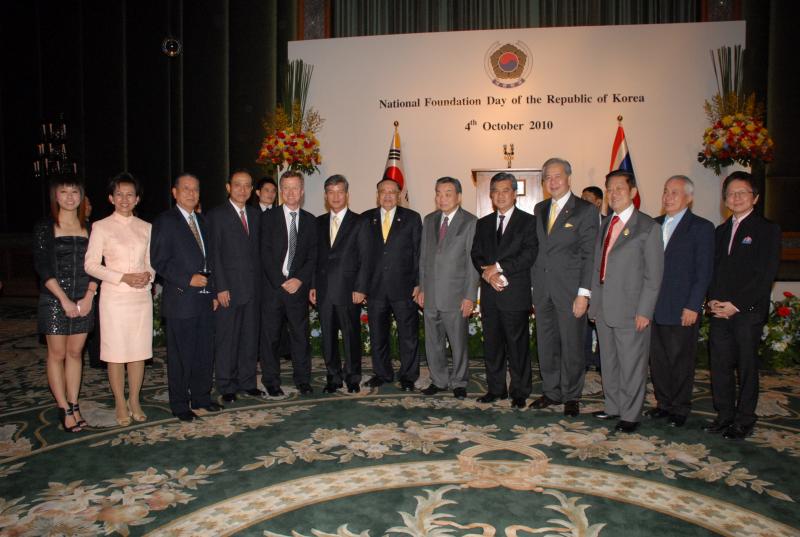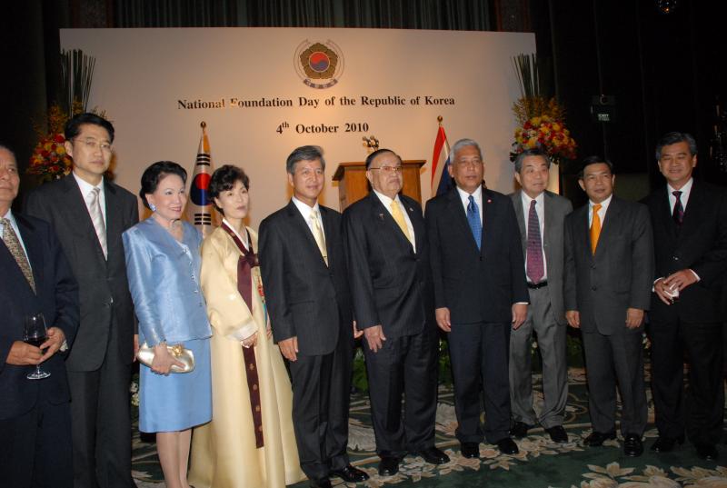 | วันจันทร์ที่ ๔ ตุลาคม ๒๕๕๓ เวลา ๑๘.๓๐ นาฬิกา ณ ห้องแกรนด์บอลรูม โรงแรมแกรนด์ ไฮแอท เอราวัณ กรุงเทพฯ นายชัย ชิดชอบ ประธานรัฐสภาและประธานสภาผู้แทนราษฎร ร่วมงานเลี้ยงรับรองเนื่องในโอกาสวันชาติสาธารณรัฐเกาหลี |