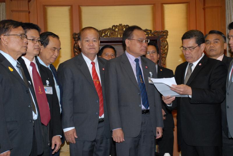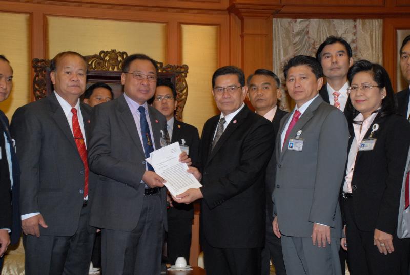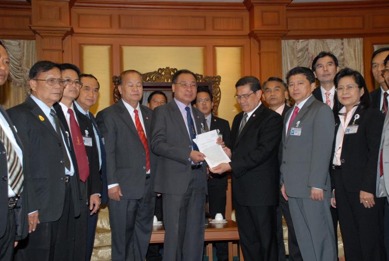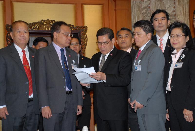 วันพฤหัสบดีที่ ๘ ธันวาคม ๒๕๕๔ เวลา ๑๓.๐๐ นาฬิกา ณ ห้องรับรอง ๒ ชั้น ๒ อาคารรัฐสภา ๑ นายสมศักดิ์  เกียรติสุรนนท์  ประธานรัฐสภา และประธานสภาผู้แทนราษฎร รับยื่นหนังสือจากนายประชา พรหมนอก สมาชิกสภาผู้แทนราษฎร พรรคเพื่อไทย พร้อมด้วยคณะ เพื่อขอให้นายอภิสิทธิ์  เวชชาชีวะ และนายแพทย์วรงค์  เดชกิจวิกรม สมาชิกสภาผู้แทนราษฎร พรรคประชาธิปัตย์ พ้นจากตำแหน่ง