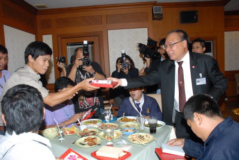 นายสมศักดิ์ เกียรติสุรนนท์ ประธานรัฐสภา และประธานสภาผู้แทนราษฎร เป็นประธานในงานสังสรรค์สัมพันธ์สื่อมวลชน ประจำปี ๒๕๕๕