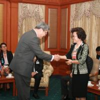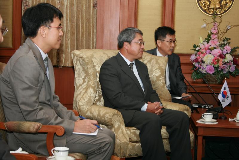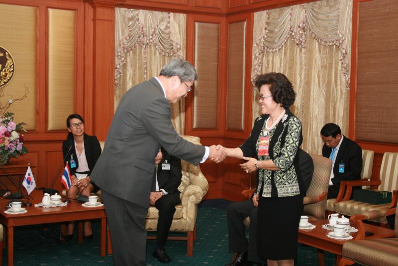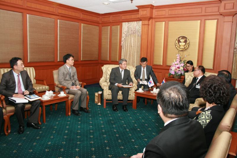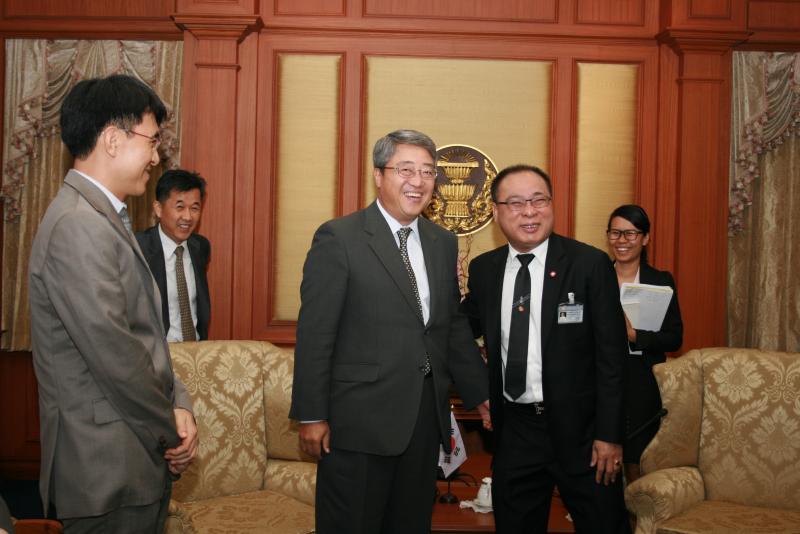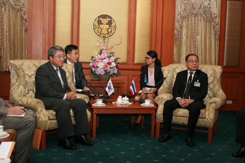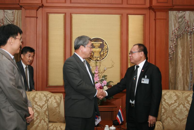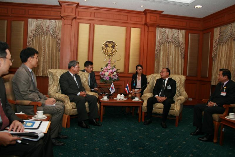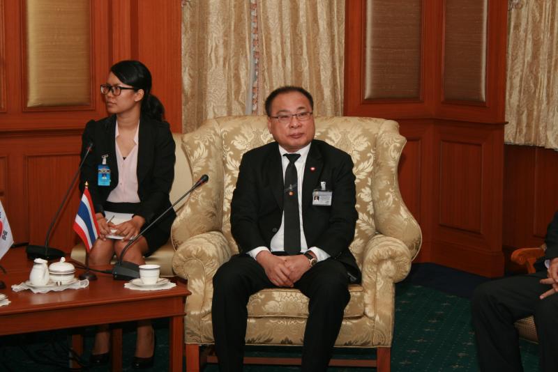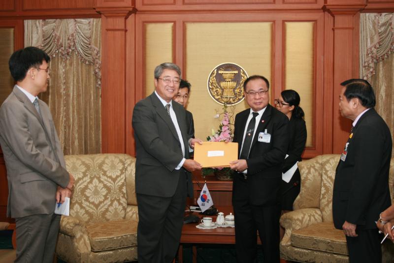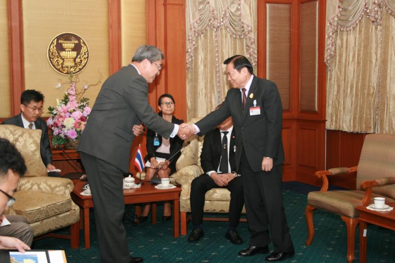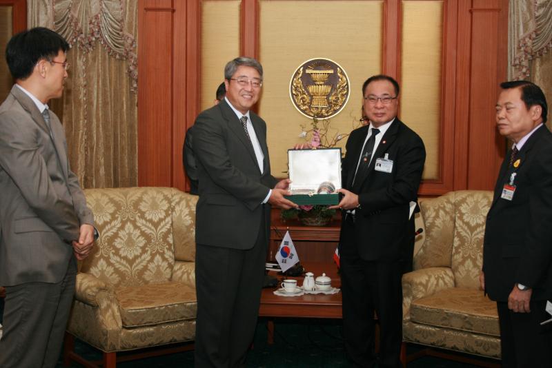 นายสมศักดิ์ เกียรติสุรนนท์ ประธานรัฐสภา และประธานสภาผู้แทนราษฎร ให้การรับรองนายจอน แจ มัน เอกอัครราชทูตสาธารณรัฐเกาหลีประจำประเทศไทย