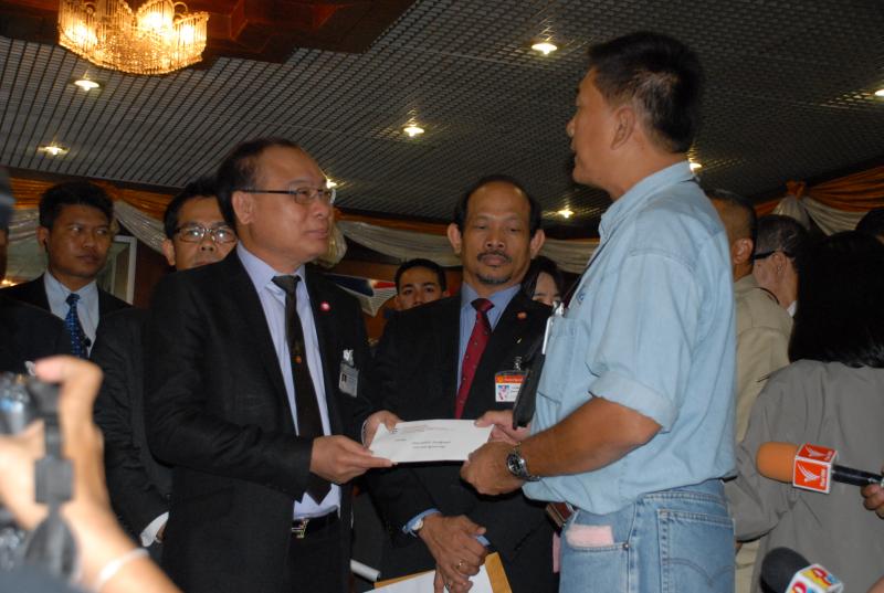 นายสมศักดิ์ เกียรติสุรนนท์ ประธานสภาผู้แทนราษฎรและประธานรัฐสภา รับหนังสือจากนายฉลาด จันทร์เดช ประธานชมรมช่างภาพการเมือง เพื่อเรียกร้องให้มีการสอบข้อเท็จจริง ว่าที่ร้อยตรีพงศ์พันธ์ สุนทรชัย สมาชิกสภาผู้แทนราษฎรจังหวัดหนองคาย พรรคเพื่อไทย
