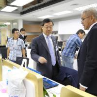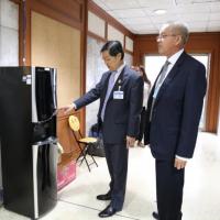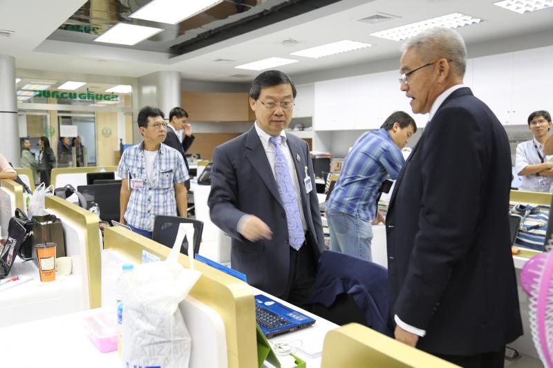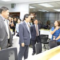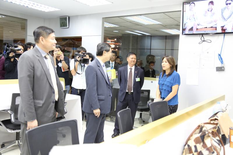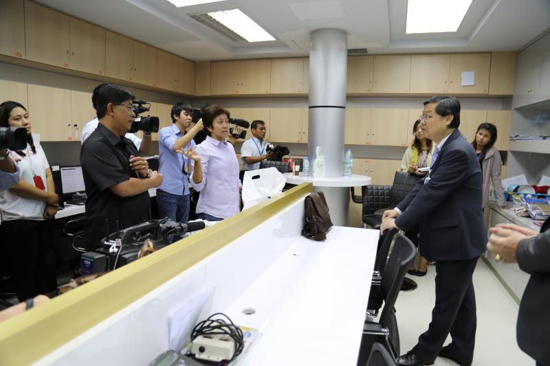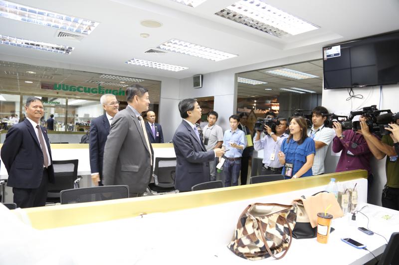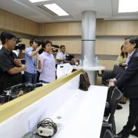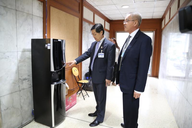 รองประธานสภานิติบัญญัติแห่งชาติ พร้อมด้วยเลขาธิการสภาผู้แทนราษฎรตรวจความเรียบร้อยห้องทำงานสื่อมวลชนประจำรัฐสภา