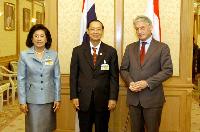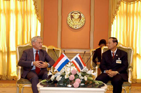 | เมื่อวันอังคารที่ ๖ มกราคม ๒๕๕๒ เวลา ๑๐.๐๐ น. ณ ห้องรับรองพิเศษ อาคารรัฐสภา๒ นายประสพสุข บุญเดช ประธานวุฒิสภา ได้ให้การรับรองนายเทียโค เทโอ วาน เดน เฮาท์ (H.E. Mr. Tjaco Theo van den Hout) เอกอัครราชทูตราชอาณาจักรเนเธอร์แลนด์ประจำประเทศไทย ในโอกาสที่เข้ารับ ตำแหน่งใหม่ พร้อมทั้งหารือเกี่ยวกับการส่งเสริมความสัมพันธ์ระหว่างประเทศในด้านต่างๆ โดยมี นางสาว ทัศนา บุญทอง รองประธานวุฒิสภา คนที่สอง ร่วมต้อนรับ |