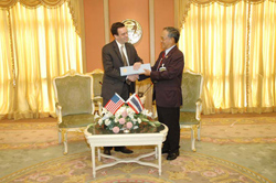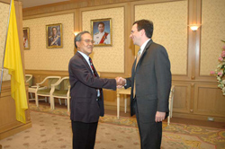 | เมื่อวันจันทร์ที่ ๑๒ มกราคม ๒๕๕๒ เวลา ๑๐.๐๐ นาฬิกา ณ ห้องรับรองพิเศษ ชั้น ๒ อาคารรัฐสภา ๒ พลเอก เลิศรัตน์ รัตนวานิช ประธานคณะกรรมาธิการการพลังงาน วุฒิสภา ได้ให้การ รับรอง Mr.Walter Lohman ผู้อำนวยการศูนย์เอเชียศึกษา ของ Heritage Foundation Asian Studies เพื่อ หารือถึงความสัมพันธ์ระหว่างไทย อเมริกา รวมทั้งการเลือกตั้งซ่อม ส.ส.และการเลือกตั้งผู้ว่า กรุงเทพมหานคร |