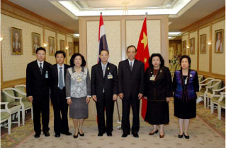 | เมื่อวันพฤหัสบดีที่ ๒๖ มีนาคม ๒๕๕๒ นายประสพสุข บุญเดช ประธานวุฒิสภา ได้ให้ การรับรอง ฯพณฯ นายกว่าน มู่ เอกอัครราชทูตวิสามัญผู้มีอำนาจเต็มแห่งสาธารณรัฐประชาชนจีน ประจำประเทศไทย ในโอกาสเข้ารับตำแหน่งใหม่ โดยมี นางสาวทัศนา บุญทอง รองประธานวุฒิสภา คนที่สอง นางพิกุลแก้ว ไกรฤกษ์ ประธานคณะกรรมาธิการการต่างประเทศ วุฒิสภา นายปานศักดิ์ รังสิพราหมณกุล ที่ปรึกษาประธานวุฒิสภา และนางสุวิมล ภูมิสิงหราช เลขาธิการวุฒิสภา ร่วมต้อนรับ ณ ห้องรับรองพิเศษ ชั้น ๒ อาคารรัฐสภา ๒ ในการพบปะสนทนาครั้งนี้ ทั้งสองฝ่ายได้หารือเกี่ยวกับการกระชับความสัมพันธ์ทางด้าน รัฐสภาของไทยและสาธารณรัฐประชาชนจีนที่ปัจจุบันยังคงความแน่นแฟ้นและพัฒนาไปได้ด้วยดี โดยเฉพาะในกลุ่มมิตรภาพรัฐสภาไทย - จีน ที่ได้มีการพบปะแลกเปลี่ยนกันระหว่างรัฐสภาทั้งสอง อย่างต่อเนื่อง ซึ่งจะเป็นการส่งเสริมความสัมพันธ์ของสองประเทศให้แน่นแฟ้นยิ่งขึ้น |