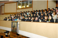 | เมื่อวันจันทร์ที่ ๒๐ เมษายน ๒๕๕๒ เวลา ๐๙.๐๐ นาฬิกา คณะผู้เข้ารับการศึกษาอบรม หลักสูตร แนวทางการป้องกันข้อผิดพลาดในการปฏิบัติด้านการคลังท้องถิ่น ของสำนักงานปลัดสำนัก นายกรัฐมนตรี มหาวิทยาลัยธรรมศาสตร์ และมหาวิทยาลัยขอนแก่น จำนวน ๑๐๐ คน ได้เข้าเยี่ยมชมและศึกษา ดูงานวุฒิสภา โดยเข้าชมวิดีทัศน์บทบาทอำนาจหน้าที่ของวุฒิสภา และสำนักงานเลขาธิการวุฒิสภา พร้อมรับฟัง การบรรยายในหัวข้อ การแบ่งส่วนราชการของสำนักงานเลขาธิการวุฒิสภา และสำนักงานเลขาธิการสภา ผู้แทนราษฎร จาก นายไพโรจน์ โพธิไสย ผู้อำนวยการสำนักวิชาการ สำนักงานเลขาธิการวุฒิสภา ณ ห้อง สารนิเทศ ชั้น ๑ อาคารรัฐสภา ๑ |