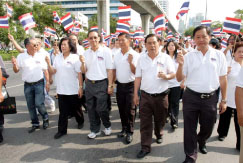 | เมื่อวันจันทร์ที่ ๔ พฤษภาคม ๒๕๕๒ เวลา ๐๙.๐๐ นาฬิกา นายประสพสุข บุญเดช ประธาน วุฒิสภา พร้อมด้วยนางสาวทัศนา บุญทอง รองประธานวุฒิสภา คนที่สอง สมาชิกวุฒิสภา ผู้บริหารและ ข้าราชการของสำนักงานเลขาธิการวุฒิสภา เข้าร่วมกิจกรรมเดินรณรงค์ตามโครงการ รณรงค์หยุดทำร้าย ประเทศไทย จากบริเวณอนุสาวรีย์พระบาทสมเด็จพระมงกุฎเกล้าเจ้าอยู่หัว ถึงธนาคารกรุงเทพสำนักงานใหญ่ ซึ่งเครือข่ายหยุดทำร้ายประเทศไทยจัดขึ้นเพื่อแสดงให้ผู้ที่กำลังขัดแย้งกันรับรู้ว่า คนไทยส่วนใหญ่ไม่ยอมรับ ความรุนแรงพร้อมต้องการแสดงให้เห็นว่าการเคารพกฎหมายและเสรีภาพของผู้อื่นเป็นสิ่งสำคัญ และจำเป็น สำหรับการดำรงอยู่ของสังคมและประเทศไทยอย่างสงบสุข |