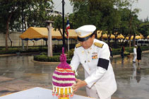 วางพานพุ่มสักการะพระบรมราชานุสาวรีย์ รัชกาลที่ ๑