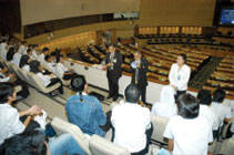 | เมื่อวันพุธที่ ๖ สิงหาคม ๒๕๕๑ เวลา ๑๐.๓๐ นาฬิกา คณะอาจารย์และนักศึกษา ชมรม นักศึกษามุสลิม มหาวิทยาลัยรามคำแหง กรุงเทพมหานคร จำนวน ๑๖๕ คน เข้าเยี่ยมชมและศึกษาดูงานวุฒิสภา โดยมีนายชาญชัย ปัญญาภรณ์ ผู้อำนวยการกลุ่มงานติดตามและประมวลผลงานของวุฒิสภา สำนักวิชาการ และ นางสาวปัทมาภรณ์ ชูสกุล ผู้อำนวยการกลุ่มงานเผยแพร่ประชาธิปไตยและกิจกรรมวุฒิสภาภูมิภาค สำนัก ประชาสัมพันธ์ ให้การต้อนรับและเป็นวิทยากรตอบข้อซักถาม ณ ห้องสารนิเทศ ชั้น ๑ อาคารรัฐสภา ๑ จากนั้นเข้า ชมห้องประชุมรัฐสภา โดยมีสมาชิกวุฒิสภาประกอบด้วย นายรุสดี บินหะยีสะมะแอ สมาชิกวุฒิสภาสรรหา ภาค วิชาชีพ และนายสุริยา ปันจอร์ สมาชิกวุฒิสภาจังหวัดสตูล พร้อมด้วย นายนิมุคตาร์ วาบา สมาชิกสภาผู้แทน ราษฎรจังหวัดปัตตานี เขตที่ ๒ และนายเจะอามิง โตะตาหยง สมาชิกสภาผู้แทนราษฎร จังหวัดนราธิวาส ร่วมให้ การต้อนรับ ณ ห้องชมการประชุมสำหรับประชาชน ชั้น ๓ อาคารรัฐสภา ๑ |