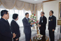 | เมื่อวันพฤหัสบดีที่ ๓ เมษายน ๒๕๕๑ เวลา ๑๐.๓๐ นาฬิกา ณ ห้องประธานวุฒิสภา นายวิทธยา บริบูรณ์ทรัพย์ ผู้อำนวยการโรงเรียนพระโขนงพิทยาลัย ในฐานะนายกสมาคมผู้บริหารโรงเรียน มัธยมศึกษาแห่งประเทศไทย ได้นำคณะผู้บริหารโรงเรียนมัธยมศึกษาแห่งประเทศไทย เข้าเยี่ยมคารวะและมอบดอกไม้ แสดงความยินดีกับ นายประสพสุข บุญเดช ประธานวุฒิสภา ในโอกาสที่ได้รับพระบรมราชโองการโปรดเกล้าฯ แต่งตั้งให้ดำรงตำแหน่งประธานวุฒิสภา |