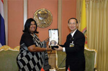 | เมื่อวันพุธที่ ๙ เมษายน ๒๕๕๑ เวลา ๑๔.๐๐ นาฬิกา ณ ห้องรับรองพิเศษ ชั้น ๒ อาคารรัฐสภา ๒ นายประสพสุข บุญเดช ประธานวุฒิสภา ได้ให้การรับรอง ฯพณฯ นางสาวลาธา เรดดี้ (H.E. Ms.Latha Reddy) เอกอัครราชทูตสาธารณรัฐอินเดียประจำประเทศไทย ที่ขอเข้าเยี่ยมคารวะเพื่อแสดงความยินดีในโอกาสเข้ารับ ตำแหน่งของประธานวุฒิสภา ในการเข้าเยี่ยมคารวะครั้งนี้ เอกอัครราชทูตสาธารณรัฐอินเดียประจำประเทศไทย ได้หารือถึงแนวทางในการกระชับความสัมพันธ์ระหว่างรัฐสภาไทยกับรัฐสภาอินเดียให้มากยิ่งขึ้น เพื่อที่จะได้ แลกเปลี่ยนข้อมูลข่าวสารทางวิชาการระหว่างห้องสมุดรัฐสภาอินเดียและห้องสมุดรัฐสภาไทย โดยในโอกาสนี้ยังได้ เรียนเชิญคณะรัฐสภาไทยไปเยือนรัฐสภาอินเดียอีกด้วย |