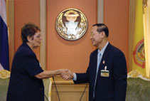 | เมื่อวันพุธที่ ๒๓ เมษายน ๒๕๕๑ เวลา ๑๐.๐๐ นาฬิกา ณ ห้องรับรองพิเศษ ชั้น ๒ อาคาร รัฐสภา ๒ นายประสพสุข บุญเดช ประธานวุฒิสภา ได้ให้การรับรอง ฯพณฯ นางมาเรีย ลุยซา เฟร์นันเดซ เอกิลัซ (H.E. Ms.Maria Luisa Fernandez Eguilaz) เอกอัครราชทูตคิวบาประจำประเทศไทย ที่ขอเข้าเยี่ยมคารวะเพื่อแสดง ความยินดีในโอกาสเข้ารับตำแหน่งของประธานวุฒิสภา ในการนี้ ทั้งสองฝ่ายได้สนทนาเกี่ยวกับความสัมพันธ์ทั่วไประหว่างไทยกับคิวบา ซึ่งมีความสัมพันธ์อัน ดีในหลาย ๆ ด้าน เช่น การแลกเปลี่ยนการเยือนระหว่างกันทั้งในระดับทวิภาคีและพหุภาคี การเป็นภาคีสมาชิกสหภาพ รัฐสภา (Inter-Parliamentary Union : IPU) ร่วมกัน รวมถึงการที่คิวบาเป็นประเทศที่นำเข้าข้าวจากประเทศไทย โอกาสนี้เอกอัครราชทูตคิวบาประจำประเทศไทยยังได้กล่าวถึงทุนการศึกษาวิชาต่าง ๆ ที่คิวบาประจำประเทศไทย ยังได้ กล่าวถึงทุนการศึกษาวิชาต่าง ๆ ที่คิวบาจัดสรรขึ้น ซึ่งสำนักงานเลขาธิการวุฒิสภาอาจรับไปดำเนินการเพื่อมอบให้กับ เจ้าหน้าที่ก็ได้ |