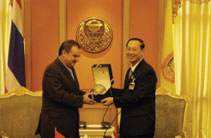 | เมื่อวันพฤหัสบดีที่ ๒๔ เมษายน ๒๕๕๑ เวลา ๑๑.๐๐ นาฬิกา ณ ห้องรับรองพิเศษ ชั้น ๒ อาคาร รัฐสภา ๒ นายประสพสุข บุญเดช ประธานวุฒิสภา ให้การรับรอง นายลาบิบ เอล อุจ (Mr.Lahbib EL EULJ) ประธานคณะกรรมาธิการต่างประเทศ สภาที่ปรึกษาแห่งราชอาณาจักรโมร็อกโก ที่ขอเข้าเยี่ยมคารวะเพื่อแสดงความ ยินดีในโอกาสเข้ารับตำแหน่งของประธานวุฒิสภา โดยนอกจากจะได้หารือถึงแนวทางในการกระชับความสัมพันธ์ใน ด้านต่าง ๆ ทั้งในด้านเศรษฐกิจสังคม โดยเฉพาะด้านการท่องเที่ยว การพัฒนาทรัพยากรมนุษย์ ตลอดจนความร่วมมือ ในการแก้ไขปัญหาด้านสิ่งแวดล้อม ปัญหาด้านการศึกษาและการพัฒนาเทคโนโลยีให้แน่นแฟ้นโดยให้มีการแลกเปลี่ยน การเยือนระหว่างกันแล้ว ทั้งสองฝ่ายยังได้สนทนาแลกเปลี่ยนเรียนรู้เกี่ยวกับองค์ประกอบและที่มารวมถึงกระบวนการ ทำงานของวุฒิสภาไทยกับวุฒิสภาโมร็อกโกอีกด้วย |
