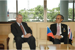 | เมื่อวันอังคารที่ ๑๕ กรกฎาคม ๒๕๕๑ เวลา ๑๔.๐๐ นาฬิกา ณ ห้องรับรองพิเศษ ชั้น ๒ อาคารรัฐสภา ๒ พลเอก เลิศรัตน์ รัตนวานิช ประธานคณะกรรมาธิการการพลังงาน วุฒิสภา ได้ให้การรับรอง H.E. Mr. Ivan HOTEK เอกอัครราชทูตสาธารณรัฐเช็กประจำประเทศไทย ในโอกาสเข้ารับตำแหน่งใหม่ |