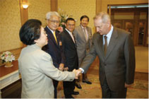 | เมื่อวันอังคารที่ ๒๒ กรกฎาคม ๒๕๕๑ เวลา ๑๐.๐๐ นาฬิกา ณ ห้องรับรองพิเศษ ชั้น ๒ อาคารรัฐสภา ๒ นายถาวร ลีนุตพงษ์ ประธานคณะกรรมาธิการการเงิน การคลัง การธนาคารและสถาบันการเงิน วุฒิสภา พร้อมกรรมาธิการ ได้ให้การรับรอง H.E. Mr. Ivan HOTEK เอกอัครราชทูตสาธารณรัฐเช็กประจำประเทศ ไทยในโอกาสเข้ารับตำแหน่งใหม่ |