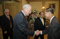 | เมื่อวันพฤหัสบดีที่ ๗ สิงหาคม ๒๕๕๑ เวลา ๑๕.๐๐ นาฬิกา ณ ห้องรับรองพิเศษ ชั้น ๒ อาคารรัฐสภา ๒ พลเอก เลิศรัตน์ รัตนวานิช ประธานคณะกรรมาธิการการพลังงาน วุฒิสภา พร้อมคณะ ได้ให้การ รับรอง นายดักลาส กิบสัน (H.E. Mr. Douglas Gibson) เอกอัครราชทูตสาธารณรัฐแอฟริกาใต้ประจำประเทศไทย เพื่อแสดงความยินดีในโอกาสที่รับตำแหน่งใหม่ |
