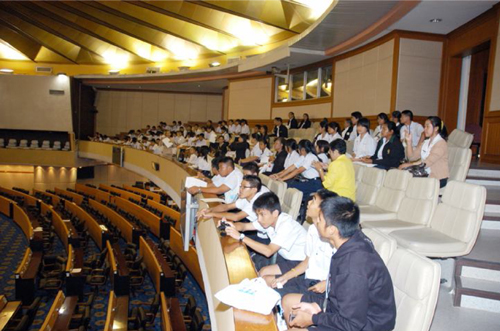 | เมื่อวันศุกร์ที่ ๒๙ สิงหาคม ๒๕๕๑ เวลา ๑๓.๐๐ นาฬิกา สำนักงานคณะกรรมการการเลือกตั้ง ประจำจังหวัดอ่างทองนำคณะเจ้าหน้าที่อาจารย์และนักเรียนชั้นมัธยมศึกษาตอนปลาย โรงเรียนอ่างทองปัทมาโรจน์ วิทยาคม จังหวัดอ่างทอง จำนวน ๙๒ คน เข้าเยี่ยมชมและศึกษาดูงานวุฒิสภา โดยเข้าชมพิพิธภัณฑ์รัฐสภา ณ บริเวณ ด้านล่างพระบรมราชานุสาวรีย์รัชกาลที่ ๗ และเข้าชมวีดิทัศน์อำนาจหน้าที่ของวุฒิสภาและสำนักงาน ณ ห้องสารนิเทศ ชั้น ๑ จากนั้นเข้าชมห้องประชุมรัฐสภา ณ ห้องชมการประชุมสำหรับประชาชน ชั้น ๓ อาคารรัฐสภา ๑ |