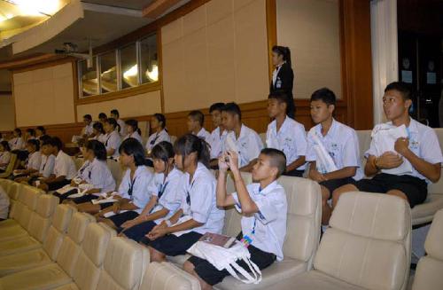 | เมื่อวันพฤหัสบดีที่ ๑๑ กันยายน ๒๕๕๑ เวลา ๑๐.๐๐ นาฬิกา คณะอาจารย์และนักเรียน โรงเรียนมหาภาพกระจาดทองอุปถัมภ์ ตำบลสำโรงเหนือ อำเภอเมือง จังหวัดสมุทรปราการ จำนวน ๕๓ คน ได้เข้าเยี่ยมชมและศึกษาดูงานวุฒิสภา พร้อมชมวีดิทัศน์บทบาทอำนาจหน้าที่ของวุฒิสภา โดยมี นางสาวปัทมา ภรณ์ ชูสกุล ผู้อำนวยการกลุ่มงานเผยแพร่ประชาธิปไตยและกิจกรรมวุฒิสภาภูมิภาค สำนักประชาสัมพันธ์ พร้อมด้วยนางสาวสุพัตรา วรรณศิริกุล นายรุ่งธรรม เปรมมางกูร แนะนายโสภณ ชาตบุษย์จารุ นิติกร สำนักกฎหมาย ให้การต้อนรับและเป็นวิทยากรตอบข้อซักถาม จากนั้น เข้าชมพิพิธภัณฑ์รัฐสภา ณ บริเวณ ด้านล่างพระบรมราชานุสาวรีย์รัชกาลที่ ๗ และเข้าชมห้องประชุมรัฐสภา ณ อาคารรัฐสภา ๑ |