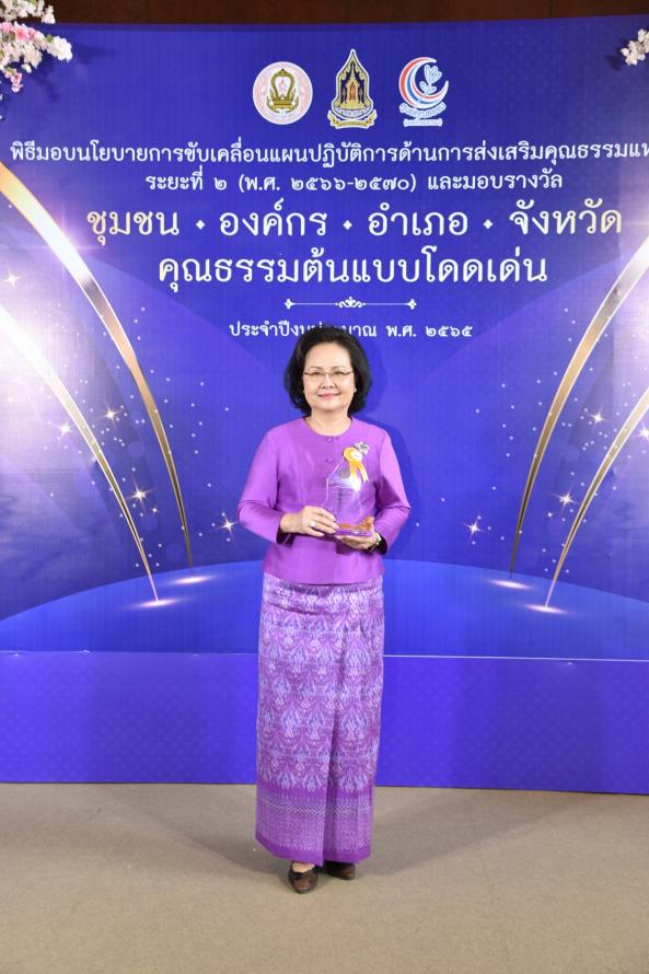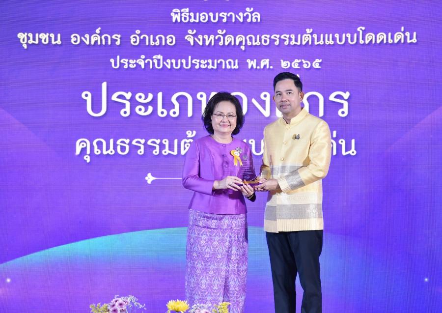 วันศุกร์ที่ 3 มีนาคม 2566 เวลา 09.00 นาฬิกา ณ ห้องนิทรรศการ 5 ชั้น 1 อาคารหอศิลป์แห่งชาติ กระทรวงวัฒนธรรม นายอิทธิพล  คุณปลื้ม รัฐมนตรีว่าการกระทรวงวัฒนธรรม ในฐานะรองประธานกรรมการส่งเสริมคุณธรรมแห่งชาติ เป็นประธานในพิธีมอบโล่รางวัล “องค์กร คุณธรรมต้นแบบโดดเด่น” ประจำปีงบประมาณ พ.ศ. 2565 ให้แก่ นางพรพิศ เพชรเจริญ เลขาธิการสภาผู้แทนราษฎร  ซึ่งสำนักงานเลขาธิการสภาผู้แทนราษฎรได้รับการคัดเลือกเป็นองค์กรคุณธรรมต้นแบบโดดเด่นและมีการดำเนินงานด้านการส่งเสริมคุณธรรมที่สามารถเป็นตัวอย่างให้แก่หน่วยงานอื่นได้ ซึ่งกิจกรรมดังกล่าว จัดโดย กรมการศาสนา กระทรวงวัฒนธรรม เพื่อประกาศยกย่อง ชุมชน องค์กร อำเภอ และจังหวัดคุณธรรมต้นแบบโดดเด่น ประจำปีงบประมาณ พ.ศ. 2565 โดยในปีนี้ รางวัลชุมชน องค์กร อำเภอ จังหวัดคุณธรรมต้นแบบโดดเด่นจำนวน 243 รางวัล และรางวัลผู้ชนะการประกวดคลิปวิดีโอ และ TikTok คุณธรรมสร้างสรรค์เพื่อสังคมไทย หัวข้อ “วินัย” จำนวน 25 รางวัล