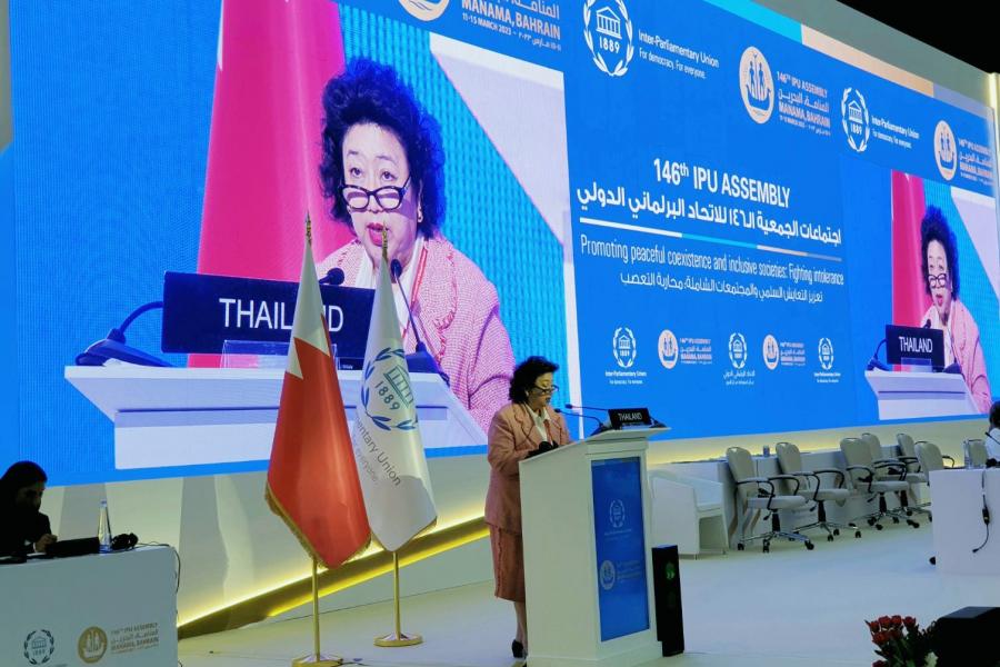 เมื่อวันจันทร์ที่ 13 มี.ค. 66 นางพิกุลแก้ว ไกรฤกษ์ ประธานคณะกรรมาธิการการต่างประเทศ วุฒิสภา ในฐานะหัวหน้าคณะผู้แทนรัฐสภาไทย และรองประธานสหภาพรัฐสภา (สัดส่วนกลุ่มเอเชีย – แปซิฟิก) พร้อมด้วยผู้แทนรัฐสภาไทยประกอบด้วย นายเกียรติ สิทธีอมร สมาชิกสภาผู้แทนราษฎร ศาสตราจารย์เกียรติคุณไกรสิทธิ์  ตันติศิรินทร์ สมาชิกวุฒิสภา และนายอนุศาสน์  สุวรรณมงคล สมาชิกวุฒิสภา เข้าร่วมการประชุมสมัชชาสหภาพรัฐสภา ครั้งที่ 146 และการประชุมอื่น ๆ ที่เกี่ยวข้อง (The 146th IPU Assembly and related meetings) ระหว่างวันที่ 11 - 15 มี.ค. 66 ณ ศูนย์การประชุม Exhibition World Bahrain (EWB) กรุงมานามา เป็นวันที่สามของการประชุม (รายละเอียดตามแนบ)