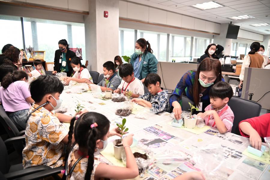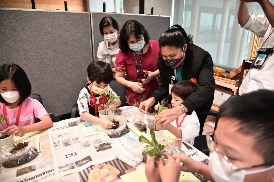 จากนั้น ได้นำเด็ก ๆ มาลงมือปฏิบัติจริงโดยการปลูกต้นชวนชมลงในกระถางต้นไม้ และประดับตกแต่งกระถางต้นไม้ของตนให้สวยงาม พร้อมนำกลับไปเป็นที่ระลึก รวมทั้งยังได้รับภาพถ่ายในขณะที่ร่วมกิจกรรมกลับไปเป็นที่ระลึกด้วย