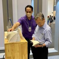 สำหรับให้ผู้ที่เข้าชมบูทนิทรรศการฯ ถ่ายภาพเป็นที่ระลึก ทั้งนี้ ผู้ที่สนใจสามารถลงทะเบียนรับหนังสือรางวัลพานแว่นฟ้า จำนวนวันละ 100 เล่ม ได้ในบริเวณการจัดแสดงส่วนที่ 4 ของนิทรรศการฯ ระหว่างวันที่ 30 มี.ค.- 9 เม.ย. 66