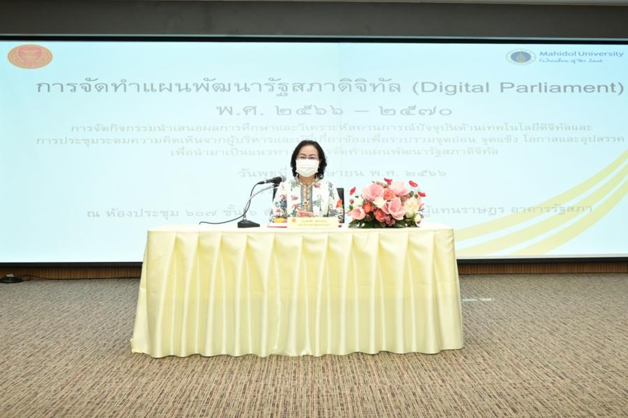 เลขาธิการสภาผู้แทนราษฎร เป็นประธานในพิธีเปิดกิจกรรมนำเสนอผลการศึกษาและวิเคราะห์สถานการณ์ปัจจุบันด้านเทคโนโลยีดิจิทัลและการประชุมระดมความคิดเห็นจากผู้บริหารและผู้ที่เกี่ยวข้องเพื่อรวบรวมจุดอ่อน จุดแข็ง โอกาส และอุปสรรค เพื่อนำมาเป็นแนวทางในการจัดทำแผนพัฒนารัฐสภาดิจิทัล