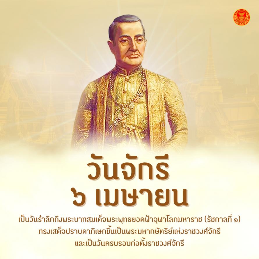 สำหรับวันที่ 6 เมษายน ของทุกปี เป็นวันที่ระลึกถึงพระบาทสมเด็จพระพุทธยอดฟ้าจุฬาโลกมหาราชและมหาจักรีบรมราชวงศ์ ซึ่งพระองค์ได้เสด็จกรีฑาทัพถึงพระมหานคร ทรงรับอัญเชิญขึ้นเถลิงถวัลย์ราชสมบัติ ดำรงราชอาณาจักรสยามประเทศ เสด็จปราบดาภิเษกขึ้นครองราชย์สมบัติ เป็นพระมหากษัตริย์แห่งราชวงศ์จักรีองค์แรก และทรงสถาปนากรุงเทพมหานครเป็นเมืองหลวงของประเทศไทย