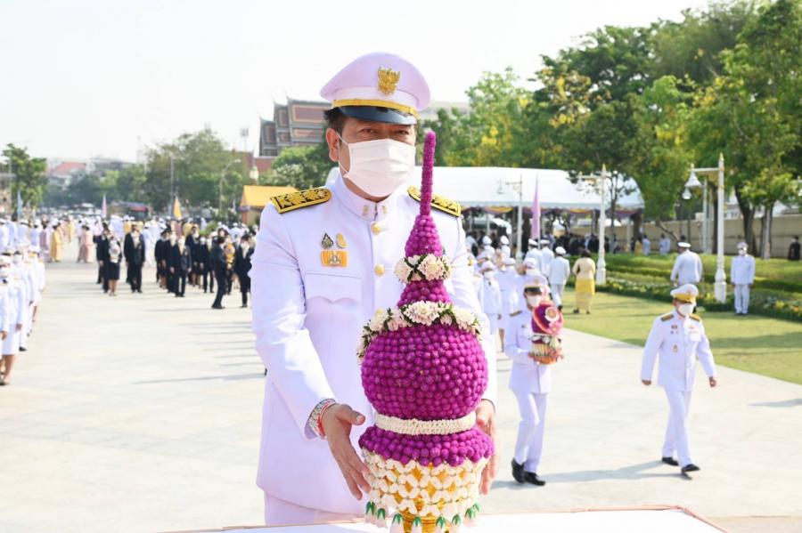 นายศิโรจน์ แพทย์พันธุ์ รองเลขาธิการสภาผู้แทนราษฎร วางพานประดับพุ่มดอกไม้ ในนาม "สำนักงานเลขาธิการ สภาผู้แทนราษฎร" ถวายราชสักการะพระบาทสมเด็จพระพุทธยอดฟ้าจุฬาโลกมหาราช ณ ปฐมบรมราชานุสรณ์ สะพานพระพุทธยอดฟ้า กรุงเทพฯ