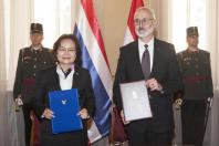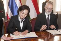 ในโอกาสนี้ นางพรพิศ เพชรเจริญ เลขาธิการสภาผู้แทนราษฎร และนายเยิร์ก ซุซ เลขาธิการรัฐสภาฮังการี ได้ร่วมลงนามในข้อตกลงความร่วมมือ (Cooperation Agreement) เพื่อส่งเสริมความร่วมมือและขยายความสัมพันธ์ระหว่างสอง สำนักงานในการสนับสนุนการปฏิบัติภารกิจของรัฐสภา ทั้งสอง ประเทศได้อย่างมีประสิทธิภาพมากยิ่งขึ้น โดยกรอบข้อตกลงดังกล่าวครอบคลุมประเด็นในมิติต่างๆ เช่น การเปรียบเทียบกฎหมายและกระบวนการนิติบัญญัติ ระบบคณะกรรมาธิการ ความโปร่งใสและการให้บริการข้อมูลข่าวสาร ระบบรัฐสภาอิเล็กทรอนิกส์ การทูตรัฐสภาในระดับทวิภาคีและพหุภาคี และการแลกเปลี่ยนประสบการณ์ด้านกิจกรรมสาธารณะ วัฒนธรรม และด้านการศึกษาและโครงการสำหรับเยาวชนเพื่อสนับสนุนให้สถาบันนิติบัญญัติให้ความสำคัญกับพลเมืองมากยิ่งขึ้น