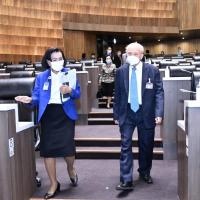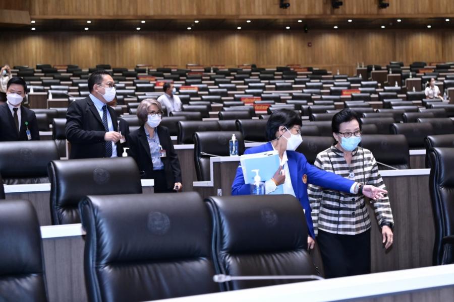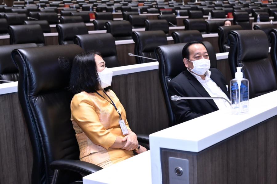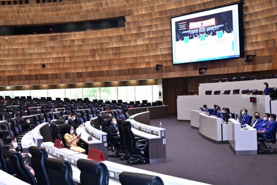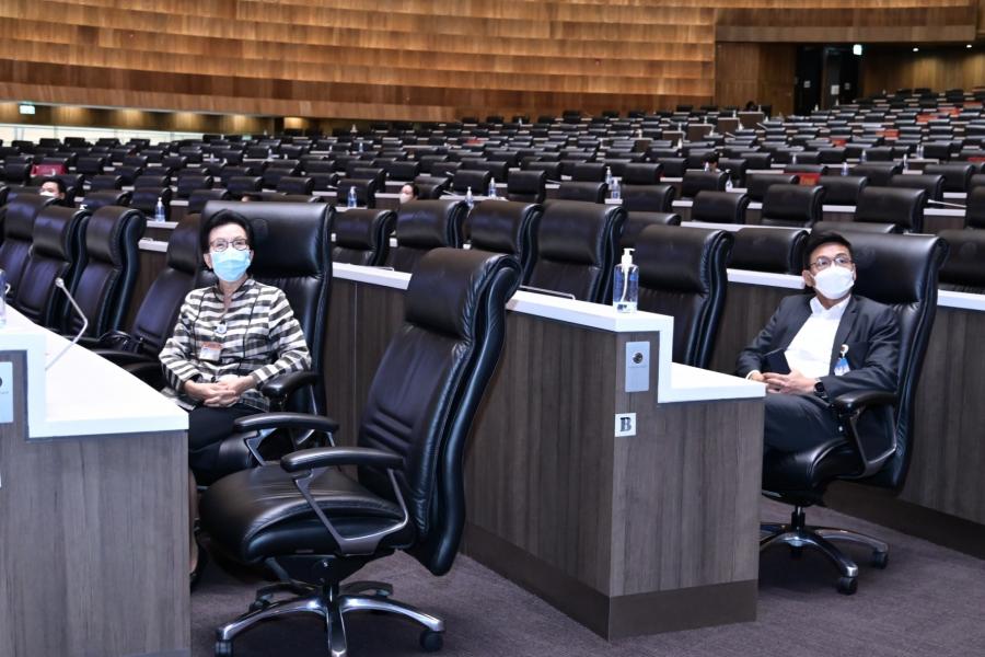 จากนั้น คณะอนุกรรมการฯ ได้เข้าเยี่ยมชมห้องประชุมสภาผู้แทนราษฎร ชั้น 2 อาคารรัฐสภาและรับฟังการบรรยายเกี่ยวกับการปฏิบัติงานด้านการประชุมของสำนักการประชุม โดย นางสินี ส้มมี ผู้อำนวยการสำนักการประชุม