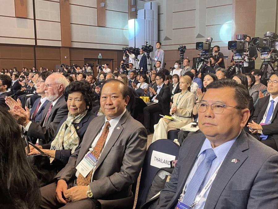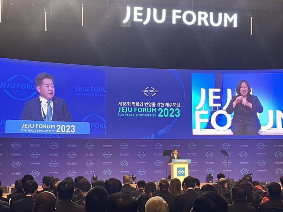 เมื่อวันที่ 1 มิ.ย. 66 เวลา 10.50 น. คณะผู้แทนรัฐสภาไทย ได้เข้าร่วมพิธีเปิดการประชุม ซึ่งนาย Oh Yong-hun ผู้นำเขตการปกครองพิเศษเกาะเชจู ได้กล่าวเปิดงานโดยเน้นประเด็นความร่วมมือระหว่างกลุ่มประเทศอาเซียนและประเทศเกาหลีภายใต้ความร่วมมือภูมิภาคอินโดแปซิฟิก (Indo-Pacific) ทั้งด้านความมั่นคงและเศรษฐกิจ เพื่อการพัฒนาอย่างยั่งยืน รวมถึงการให้ความสำคัญต่อความร่วมมือระหว่างภาคเอกชน โดยในการประชุม Jeju Forum 2023 ครั้งนี้ มีวัตถุประสงค์เพื่อมุ่งเน้นความร่วมมือด้านการจัดการห่วงโซ่อุปทานและการจัดการเปลี่ยนแปลงสภาพภูมิอากาศของภาคธุรกิจและรัฐสภา